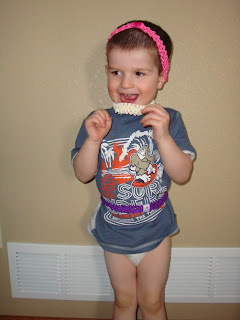 That would be a pajama shirt on his legs and pajama pants on his head. Of course this was one of the nights when Daddy had a meeting after work and so needless to say by 8:00 both kids were in their pajamas and we were cruising the streets in the Pilot. It worked like a charm and within half an hour we were all back home, the itty bitties both off in dream land.